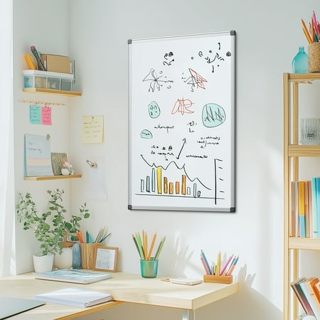 This Magnetic Dry Erase Board is the ideal tool for organizing, brainstorming, and communicating in any home, office, or school setting. With a generous size of 36 x 24 inches, there is plenty of space to jot down reminders, notes, and ideas. The sliver reinforced aluminum frame adds a sleek and professional touch to any space. This whiteboard comes equipped with 1 dry eraser, 2 dry erase markers, and 4 magnetic pins. Stay organized and on top of your tasks with this versatile and stylish Magnetic Dry Erase Board.