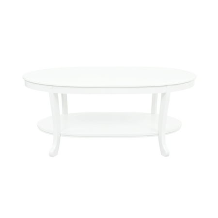 Pairing a classic design with a warm natural wood finish, this understated coffee table is the perfect addition to your furniture collection. Add it to the living room to complement a traditional ensemble or use it to display a breezy chic floral den arrangement. Its painted white finish pairs perfectly with all decor while its understated design blends effortlessly into aesthetics ranging from traditional to stately. With its two display shelves, this solid wood coffee table is the perfect finishing touch to your favorite seating group.