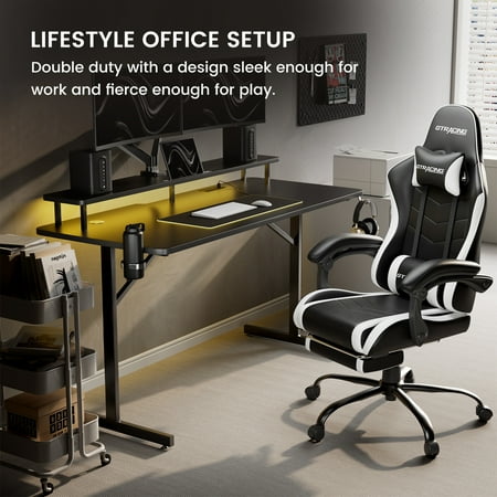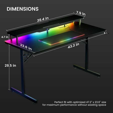 The GTRACING RGB LED Gaming Desk combines style and functionality, making it a great choice for gamers and professionals. Its sleek T-shaped base and RGB lighting add a cool, modern touch to any setup. Whether you’re gaming, streaming, or working, this adult desk helps you stay organized and productive. It features a cup holder, headphone hook, desk-on-desk design, wireless charging with embedded power socket, illuminated mouse pad and an integrated power socket, making it a perfect fit for any room or office.