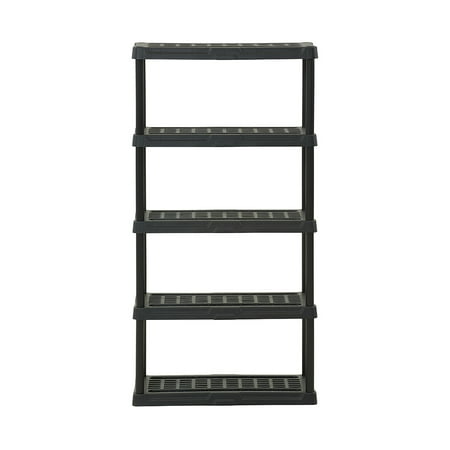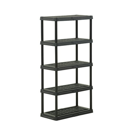 The HART 5 Tier 72" H x 36" W x 18" D black, ventilated plastic storage shelves is for all your storage and organizational needs. This lightweight, yet durable plastic storage shelf gives you ample space where and when you need it. Not only it is easy enough to assemble in minutes but only requires 1 person. Each shelf will hold up to 150 lbs when evenly distributed across the shelf and 750 lbs total capacity (when mounted to the wall). The ventilated shelves help resist mold and mildew, while not rusting unlike metal or steel shelves. Perfect to use indoors or outdoors. Great for the garage, closet, shed, pantry, basement, and more.