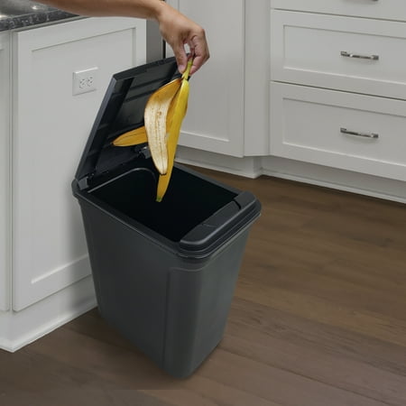 The Mainstays Kitchen Trash Can, 7.6 Gallon Plastic Garbage Bin with Touch Top Lid, Black is a durable and convenient waste solution designed for everyday use in kitchens, bedrooms, offices, or dorm rooms. Made from sturdy polypropylene plastic, this medium-size trash can is lightweight, long-lasting, and easy to clean for hassle-free maintenance. The touch-top lid opens smoothly with a simple push for quick, hygienic disposal while helping to keep odors contained, and the detachable lid makes bag changes and cleaning simple. With its 7.6-gallon capacity, it fits standard 8-gallon trash liners. Sleek, functional, and space-efficient, the Mainstays 7.6 Gallon Touch Top Trash Can keeps your home organized with ease.