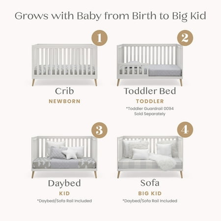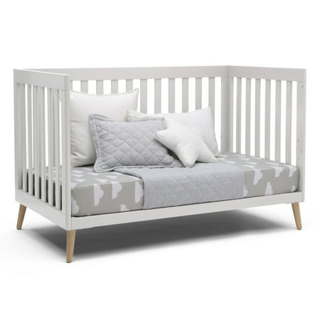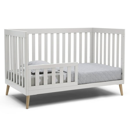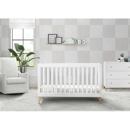 The Essex 4-in-1 Convertible Baby Crib by Delta Children is designed to elevate modern nurseries. It features gently curved corners and splayed feet in a natural finish for some retro-cool contrast. The adjustable height mattress allows this crib to grow alongside your little one-start with the mattress at the highest level, then lower it as your baby begins to sit or stand. Once your child outgrows the crib, convert it to a toddler bed, daybed or sofa. To complete your mid-century modern nursery, pair the Essex 4-in-1 Crib with the Essex Changing Table/Bookcase by Delta Children. Delta Children was founded around the idea of making safe, high-quality cribs affordable for all families. That's why all Delta Children cribs are JPMA certified, and are tested above and beyond industry standards.
