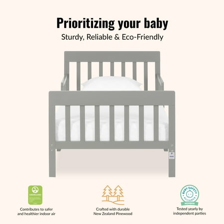 Sleep tight little one, for tomorrow an adventure awaits. Make sleep time fun for your growing toddler with the Dream On Me Finn Toddler Bed. Crafted with a charming wooden finish, this wonderful toddler bed adds a rustic, countryside vibe to your child’s bedroom! The safe & sturdy Dream On Me Finn Toddler Bed is constructed using sustainable New Zealand Pinewood in a non-toxic finish. Keeping in mind your toddler’s safety, this toddler bed is both JPMA & Greenguard Gold certified and meets/exceeds ASTM & CPSC standards. For your convenience, the Dream On Me Finn Toddler Bed is easy to spot or wipe clean. Choose from 7 different finishes that add a playful touch to your child’s sleep space. Product dimensions are 53" L X 29.7" W X 24.6” H. This product has a maximum weight capacity of 50 Lbs. and can be used by children from the age of 1 to 5 years.