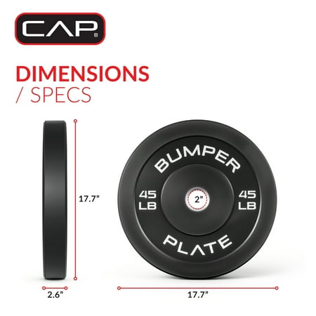 Take your weightlifting and powerlifting regimen to the next level with the CAP Barbell Olympic Rubber Bumper Plates. Each Olympic bumper plate is constructed with a steel insert and durable rubber to reduce weight room noise and to withstand drops. Suited for lifting platforms, gyms, and garage floors, these plates can be used for a variety of exercises in Olympic weightlifting and power lifting. The uniform diameter allows for an evenly distributed impact. Each bumper plate features a 2-Inch center hole to fit onto any Olympic-Style barbell. Bumper plates add a layer of safety and flexibility to your strength training routine. Each weight size is marked in silver lettering for easy identification. Reach your fitness goals by incorporating these bumper plates into your strength training routine. The 10lb, 15lb and 25lb plates are sold in Pairs while the 35lb, 45lb and 55lb plates are sold Individually.