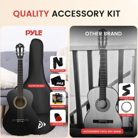 Pyle 6 String Acoustic Guitar, Right, Black Matte, 30" PGACLS30BKMT