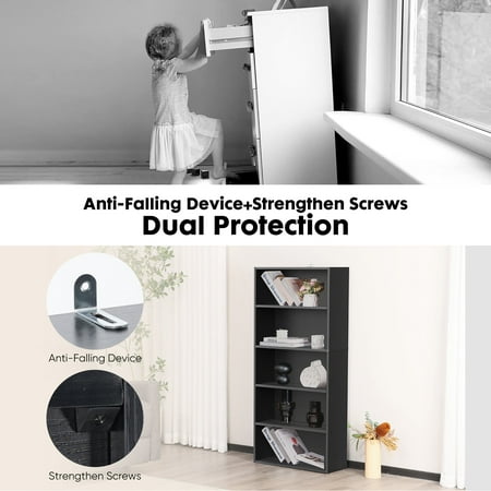 Ample Storage Space: The 5-tier wooden bookcase provides plenty of space for storing books, magazines, decorative items, and other belongings, helping you keep your living space organized and clutter-free.