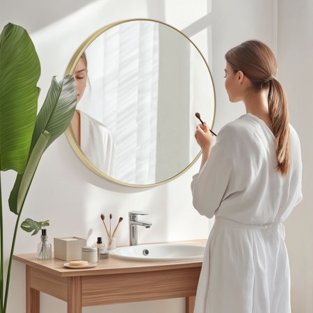 Our wall-mounted round mirror features a sleek and modern design that adds a touch of elegance to any room. The round mirror is made of high-quality materials, ensuring durability and clarity. Its simple yet stylish frame complements a variety of decor styles. Perfect for bathrooms, bedrooms, or entryways, this round mirror is easy to install and will enhance the overall aesthetic of your space. Elevate your home decor with this chic and functional wall mirror.