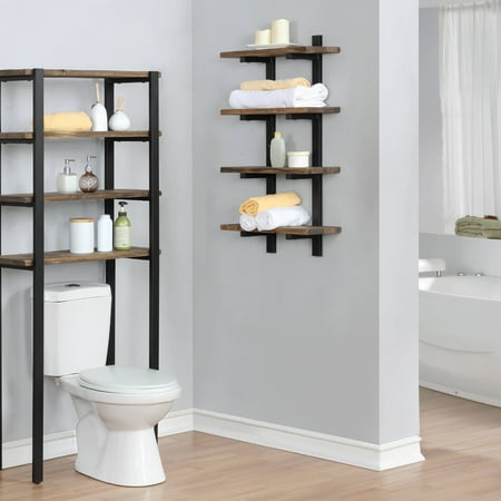 With its 20" width and 36" height this wall shelf gives you extra storage space in your bath. Bring your personal style into the bath with this modern farmhouse style bath shelf. •8" depth will allow you to fit this in even a tight space •Reclaimed wood look has unique characteristics; no two pieces will be exactly alike. •Can be used in any room of the house. •Hangs easily on the wall; secure to studs or use the EZ Drywall Anchors provided. •Durable lacquer finish allows natural characteristics of the wood to blend together. •Avoid exposing furniture to excessive heat such as a direct heat source or direct sunlight. • • •