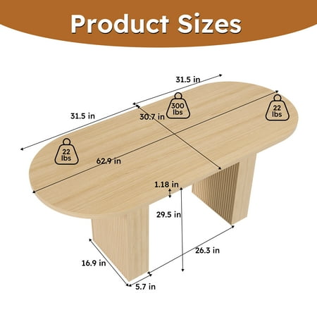 The Miniyam 62.9" Oval Dining Table combines modern farmhouse charm with everyday functionality. Crafted from durable MDF with a thickened 1.18" veneer top, it features a seamless stitched desktop that resists warping and a sturdy vertical strip base for lasting stability. The spacious 62.9"L × 30.7"W × 29.5"H design comfortably seats 4–6 people, ideal for family meals or gatherings. With a waterproof and scratch-resistant finish, this table is easy to clean and built to handle up to 330 lbs. Rounded edges add a safe, family-friendly touch, while its versatile style fits kitchens, dining rooms, restaurants, breakrooms, or sunrooms.