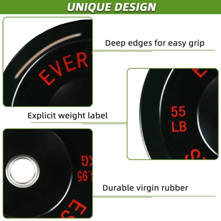 FlexWave 55LB Olympic Bumper Plates Pair, 2-Inch Black Rubber Weight Plates with Steel Hub, for Strength Training & Home Gym