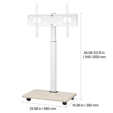 Product Description KFFKFF Floor TV Stand Enhance your TV viewing experience with this versatile manual stand! It allows you to adjust the position of your TV to achieve the perfect viewing angle, making it a great addition to any living room, bedroom, or office. Crafted with sturdy steel construction and a sleek design, it perfectly complements your existing decor. Wide Compatibility The KFFKFF rolling TV stand is compatible with a wide range of TVs, accommodating screen sizes from 32 to 70 inches. It supports VESA patterns ranging from 100 x 100 to 600 x 400 mm, ensuring it meets all your mounting needs. Installing your TV has never been easier with this versatile stand. Strong and Stable Designed for stability, the KFFKFF moving TV stand provides sturdy support for your TV. With a weight capacity of up to 99 lbs, it ensures your TV remains steady and wobble-free during viewing, offering a relaxed and enjoyable experience. Customizable Viewing Experience flexible adjustment options with the KFFKFF movable TV stand. It caters to different viewing preferences, allowing you to easily adjust the height of your TV for optimal comfort. Enjoy the perfect viewing angle every time. Easy to Move Enhance the mobility of your TV with the KFFKFF mobile TV mount. Equipped with swivel wheels, it allows you to effortlessly move your TV from one room to another. Enjoy the convenience of a portable entertainment solution. Compact and Space-Saving The KFFKFF portable TV mount features a compact design, making it ideal for small spaces. If you prefer a TV that doesn't dominate the room, this mount is the perfect choice. Maximize your space without compromising on entertainment. Seamless Integration Designed to seamlessly fit into various environments, the KFFKFF rolling TV cart is perfect for your living room, office, hotel room, or even outdoor use. Enjoy the versatility of this TV stand wherever you need it. Specifications Item Model Number: FSH25-G1 Compatible TV Size: 32-70 in / 812.8-1778 mm Weight Capacity: 99 lbs / 45 kg Panel: Left and Right Rotation ±25° Hooks: Three-level Adjustable, Each Level 2.36 in / 60 mm Vertical Pole: Two-level Adjustable, Each Level 3.15 in / 80 mm VESA Hole Pattern: 3.94 x 3.94-23.62 x 15.75 in / 100 x 100-600 x 400 mm Product Weight: 20.28 lbs / 9.2 kg Product Dimensions: 25.98 x 14.96 x (45.08-53.15) in / 660 x 380 x (1145-1350) mm Package Content 1 x TV Stand 3 x Flat Head Hexagon Screw M8x45 4 x Flat Head Hexagon Screw M6x25 4 x Iron Washer M6x16x1.5 4 x Flat Head Hexagon Screw M6X40 2 x FS601-Column Flat Elliptical Washer 2 x FS11-Hook Iron Plate 2 x Pan Head Cross Slot Screw M5x30 16 x Flat Head Hexagon Screw M6x10 2 x FS11-Adhesive Cable Clip 1 x Hexagon Wrench M4 1 x Hexagon Wrench M5 1 x Printed Letter Separation Bag