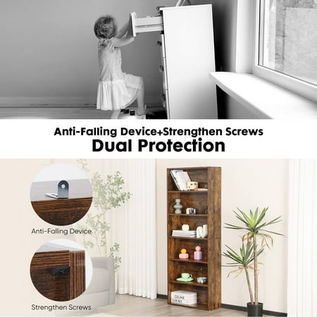 Ample Storage Space: The 6-tier wooden bookcase provides plenty of space for storing books, magazines, decorative items, and other belongings, helping you keep your living space organized and clutter-free.