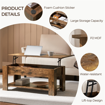 This coffee table is designed with a lift top, which can be easily adjusted to a suitable and comfortable height to use a laptop, write or dine while sitting on the couch. Under the tabletop, there is a large storage space for keeping your daily used items handy and clean. Made of high quality materials and built in a solid and durable structure, our coffee table is strong and sturdy for your everyday use. This modern and contemporary table is simple in shape and chic in color, so it is compatible with any room style and decor. It is a practical and beautiful coffee table for small spaces and works great in living room and office. Simple assembly is required.