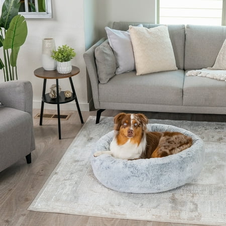Give your pet more than just a dog bed – give them the comfort they deserve. From the creator of The Original Calming Donut Dog and Cat Bed, Best Friends by Sheri, the SnuggleSoft Donut Bed provides the cuddled-up comfort you expect with a silky SnuggleSoft fabric for premium, lightweight warmth. This innovative donut cuddler bed consists of a unique blend of shredded foam and fluffy CoziLOFT polyfill fibers to provide better sleep, support joints, and offer a calming, self-warming effect. Your pet will be instantly enveloped in premium, soft, luxurious cushioning. The poly filling keeps its loft for up to 3x longer than standard pet beds, providing lasting comfort, support, and aesthetic appeal. Encouraging a deeper night’s rest or a refreshing daytime nap, the SnuggleSoft dog bed has been carefully designed to provide optimal neck, joint, and muscle support. For dogs and cats who like to burrow, the bed creates a perfect space for cuddles and top-notch snuggling. With a water and dirt-resistant bottom, this calming pet bed helps prevent messes from reaching your floors. When accidents happen, or the bed simply needs a refresh, toss the shell (30" bed) or entire bed (18" or 23" beds) into the washing machine for easy clean up. Follow the instructions on the label to ensure proper care. SAFETY & CARE: FOR PET USE ONLY. This is not a chew toy. Ultimately, your pet's safety is your responsibility. Inspect regularly and discard if any part becomes damaged or separated. May be harmful if ingested. If item becomes wet, some color transfer may occur. Use caution around light-colored upholstery or carpeting.