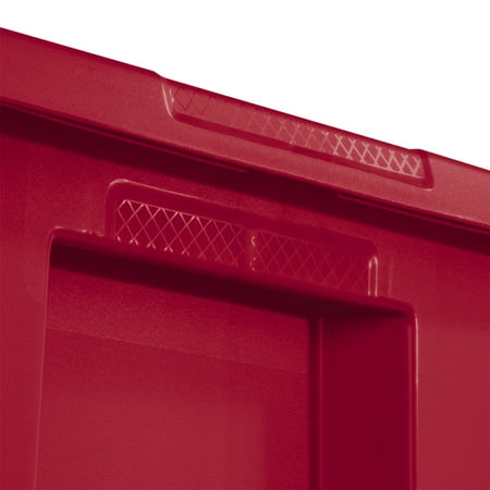 Stay organized with Sterilite’s 18 Gallon Storage Bin with Lid! The square, space-efficient shape features a deep recessed lid which allows totes to stack securely, maximizing vertical storage space. The broad rim adds strength and the textured integrated handles make for easier carrying and lifting. Contain and conceal clutter throughout your home to create a neat and tidy living space! This popular sized plastic storage container is ideal for sorting and storing off-season gear, decor, games, and more. Note: Use good judgment when storing items, don’t overload, keep heaviest bin at bottom, and don’t stack too high.
