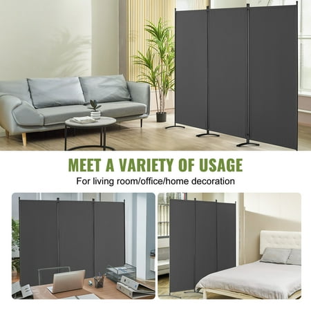 Product Description KFFKFF 3 Panel Room Divider Are you in search of a chic and practical solution to divide your space? Look no further than this indoor privacy screen! Available in a range of sizes and colors, it offers exceptional quality and boasts waterproofing, sun shading, and a robust build to prevent tipping. When folded, it occupies less than 1 ㎡ of space! Transform any area into your ideal sanctuary! Reliable Durability Crafted from premium 180g polyester PA cloth, our folding privacy screens ensure long-lasting quality. Not only do they provide a serene private space, but they also effectively shield you from sunlight and water. Strong and Space-Saving Our room divider offers robust support and can be effortlessly folded and stored, occupying less than 1㎡ of your valuable space when not in use. Customizable Configuration Tailor the height of each panel and adjust the connecting buckle to create the ideal size and layout for your specific area, offering you utmost flexibility. Conveniently Compact With its 3-panel design, our room divider can be conveniently folded and stored, occupying less than 1㎡ of space when not in use. Its compactness ensures easy storage. Effortless Setup Designed with a user-friendly snap connection method, our room divider wall can be effortlessly installed by a single person using basic tools. Setting it up is a breeze. Versatile and Stylish Whether you need to divide your living room, enhance your office space, or add a decorative touch to your home, our room divider screen is a versatile solution that caters to your diverse needs. Specifications Item Model Number: PFTSTGSH08 Color: Gray Product Dimensions: 89.8 x 20.5 x 72.4 in / 228 x 52 x 184 cm Net Weight: 15.2 lbs / 6.9 kg Folded Dimensions: 29.7 x 20.5 x 72.4 in / 75.5 x 52 x 184 cm Package Content 1 x Allen Wrench 20 x Allen Screws M6 * 35mm 6 x Double-Headed U-shaped Buckle