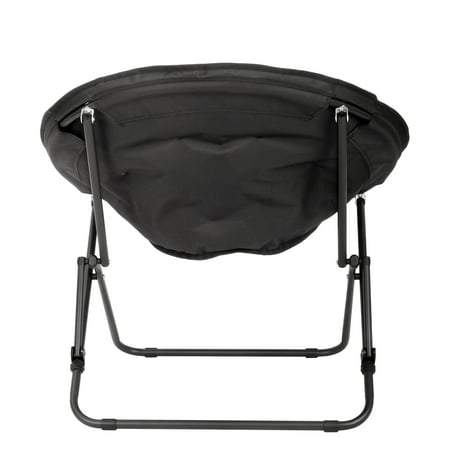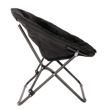 The Mainstays Saucer Chair for Kids and Teens in Black is a comfortable and stylish lounge chair designed for everyday use in bedrooms, dorm rooms, apartments, and small living spaces. This saucer chair features a soft, cozy seat that provides comfortable seating for relaxing, reading, gaming, studying, or watching TV. Built with a durable steel frame, it offers reliable support while remaining lightweight and easy to move from room to room. The foldable design allows for quick setup and compact storage, making it a convenient space-saving seating solution. Perfect for kids and teens, this portable lounge chair adds modern style and extra seating to any room with its classic black color.
