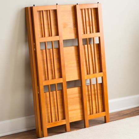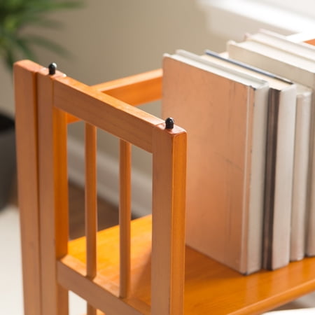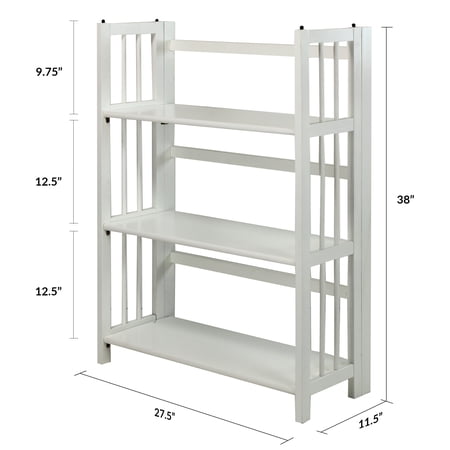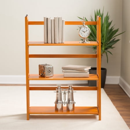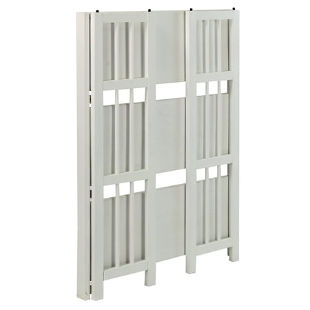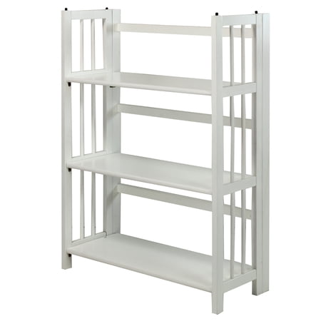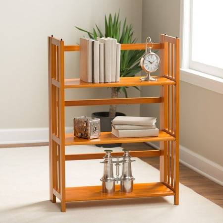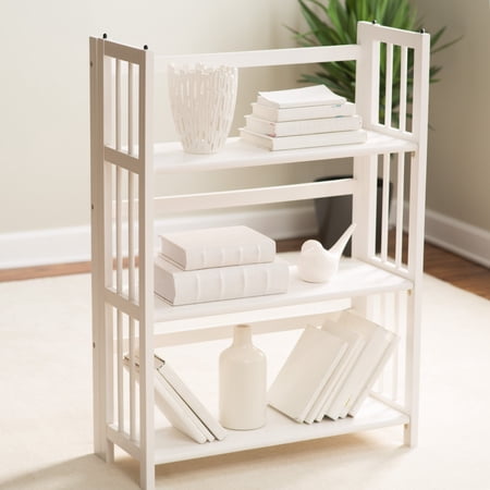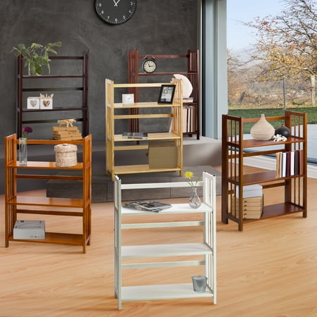 Sturdy and stackable, this Folding Bookcase combines durability and versatility. 3 strong shelves provide ample room for storage or decoration. Need more room? Stack up to 2 bookcases high to enhance organization or free up space. Foldable design makes transportation, storage, and rearrangement a breeze. Constructed of solid wood for lasting beauty.