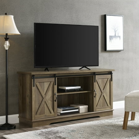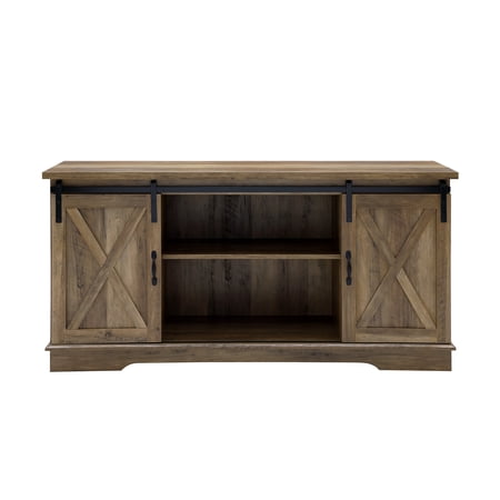 With a stand-out design, this 58 inch storage console from Manor Park will integrate style into your home. This TV stand will give your living room a charming country feel, while also providing plenty of storage space for your electronics and de9cor. Featuring two sliding barn door styled cabinet fronts for a versatile design where you can either close off the middle or both sides, depending on your needs. Adjustable shelving and cable management make it simple for you to keep your electronics in one place. This media console is constructed of high-grade MDF. The modern farmhouse style of this entertainment center will become a piece in your living room youll admire.