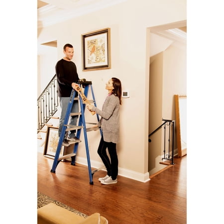 Perform a range of repair and installation tasks with a boost from the Louisville Ladder 6' Fiberglass Step Ladder, W-3217-06. Non-conductive construction allows for safely working around electrical wiring. It can also be used to change light bulbs, access roofing and many other applications. The ProTop at the uppermost point of the 6' fiberglass ladder has multiple slots to hold power and hand tools, paint brushes and other items. It also features a paint pail hook. Slip-resistant rubber feet and deep, anti-slip aluminum steps with riveted in channels offer stability, balance and safety. An additional pinch-resistant spreader brace ensures that this product stays in place when you are climbing it. The 6' step ladder is easy to use and can be stored in a garage or up against the house when the job is finished. Every Louisville aluminum ladder is ANSI Type 2 rated to hold a maximum of 225 lbs of tools and people combined.